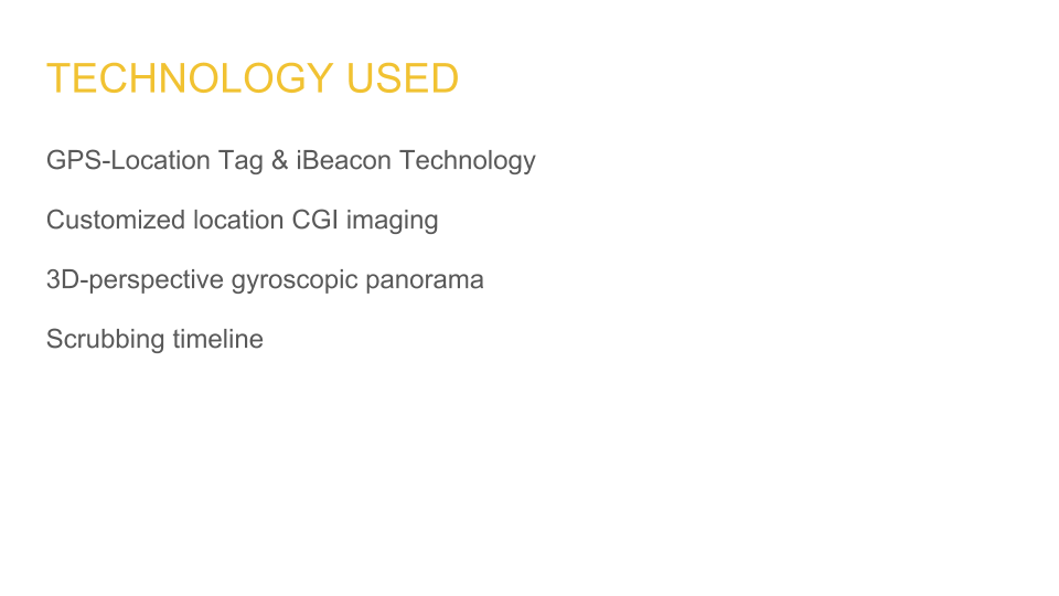 Scrubbing through the timeline function produces historically accurate CGI imagery that matches your photo perspectives. Share your photo through social media and collect your time travel images in-app.